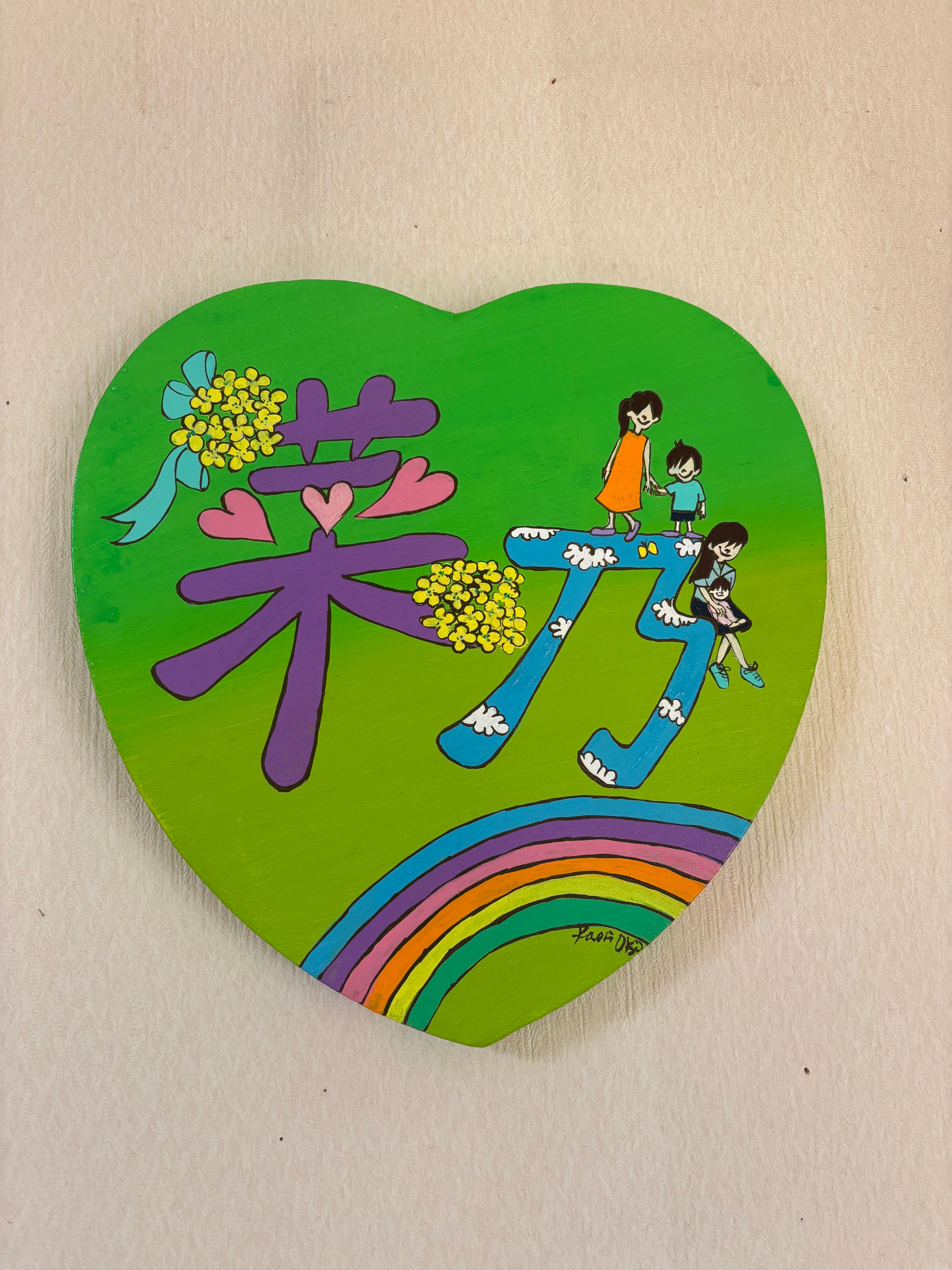 大切なお名前をアートとして形にした、「お名前アート 30センチハート型キャンバス」。この作品は、親が子供のために考えた名前に込められた深い想いを込めて、一つ一つ丁寧に描かれています。